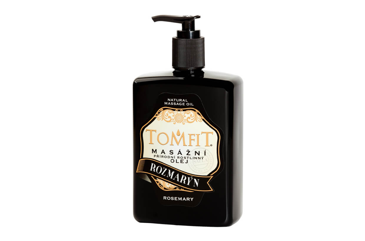 Uleiul vegetal natural TOMFIT cu ulei esențial de rozmarin stimulează după oboseală, favorizează concentrarea, ameliorează anxietatea, ajută la răceli, gripă și reumatism. Uleiul de masaj este potrivit pentru masajul durerii musculare.