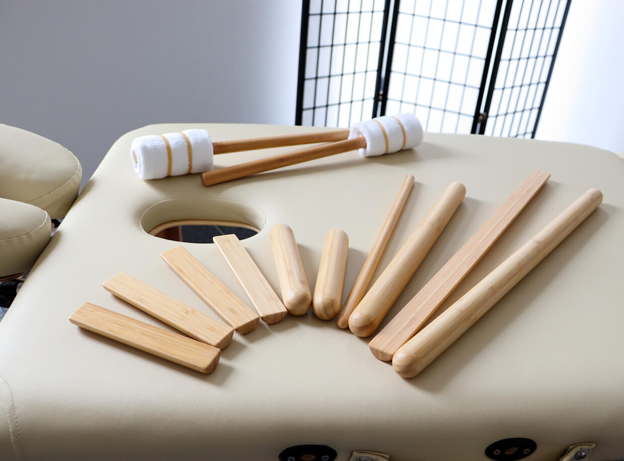 Masajul cu bețe de bambus ameliorează durerea și rigiditatea mușchilor, îmbunătățește circulația sângelui, stimulează sistemul limfatic, ajută în cazul inflamațiilor și a celulitei.