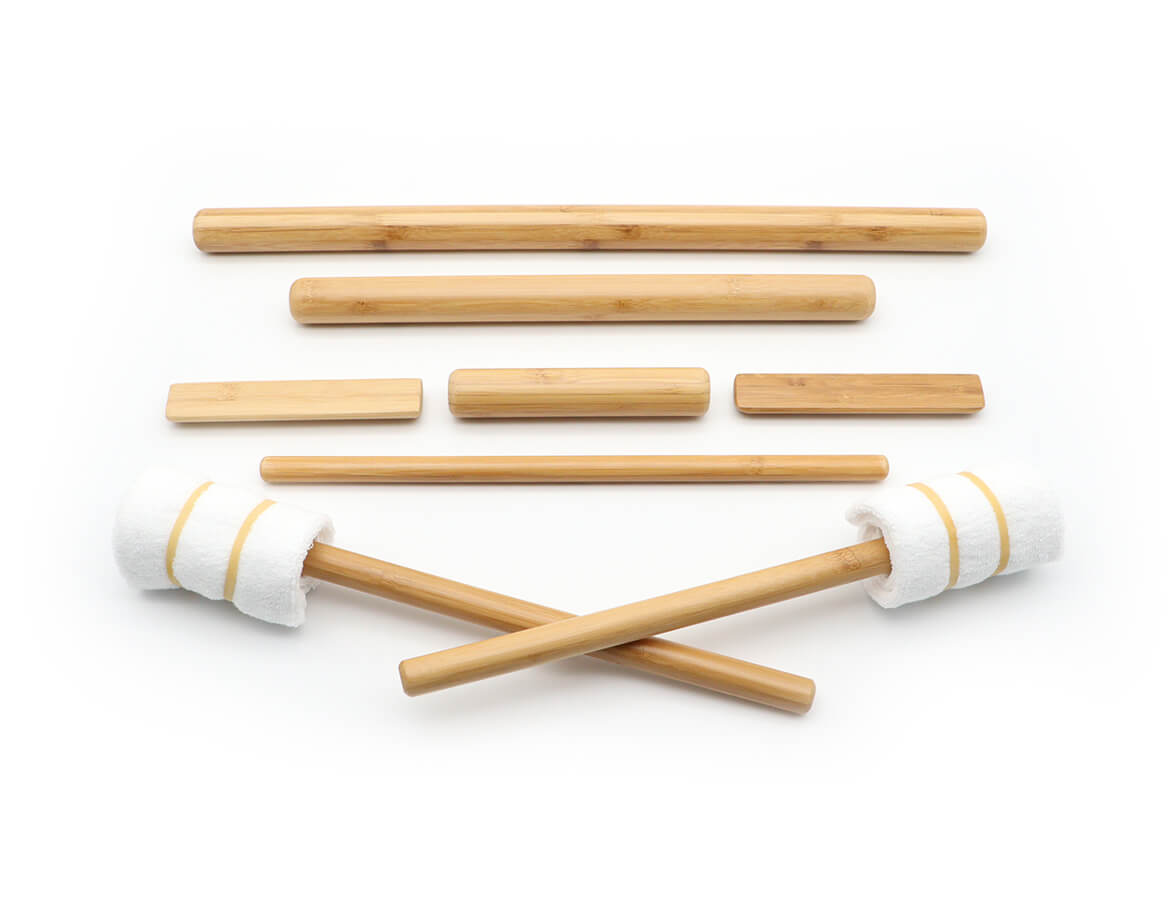Setul de 8 bețe de bambus naturale presate la rece, este destinat masajului întregului corp.